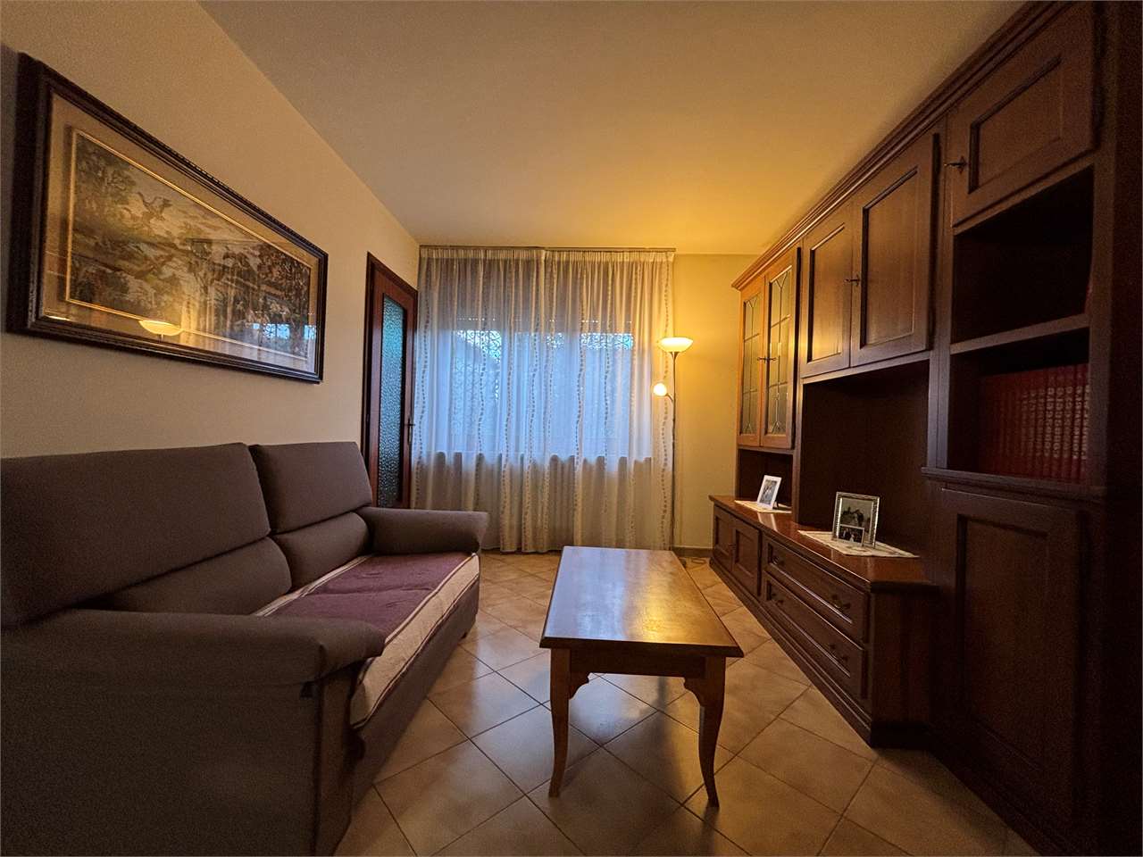 L’immobile si apre su un ingresso accogliente che conduce al luminoso soggiorno con angolo cottura, perfettamente organizzato per la vita quotidiana.