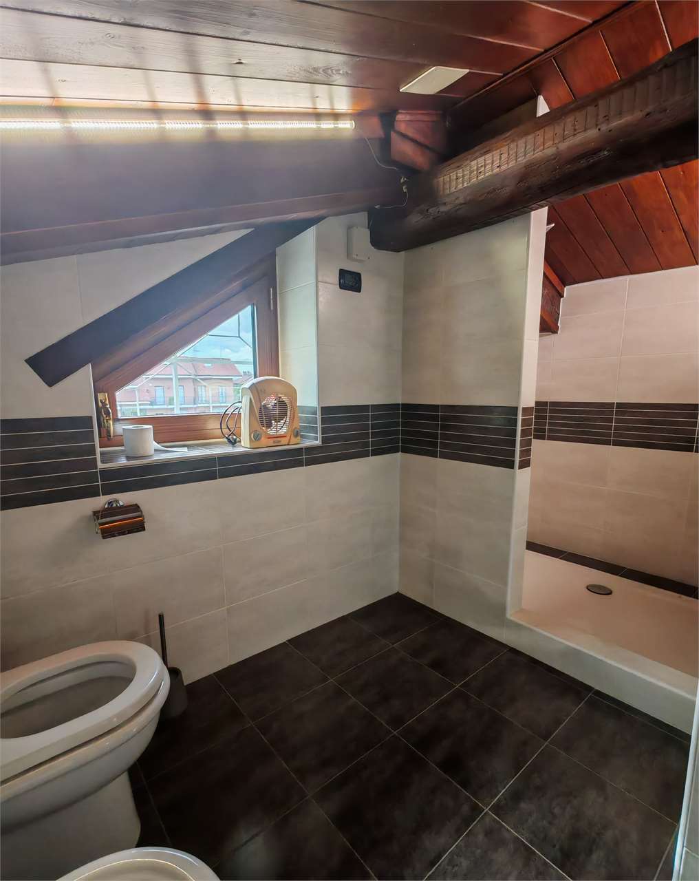 Un ampio locale sottotetto, completamente rifinito e dotato di impianto dell’aria condizionata è collegato tramite scala interna ed ospita una terza camera, un grazioso soggiorno ed un bagno anch’esso completo di piatto doccia e velux.