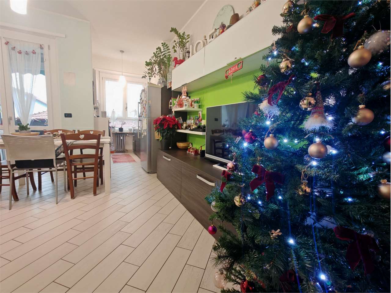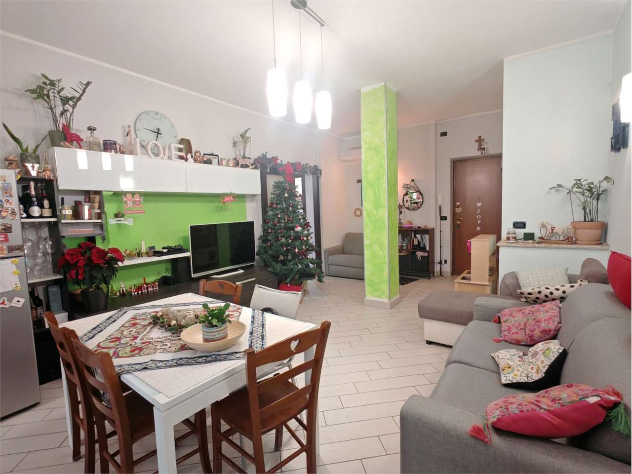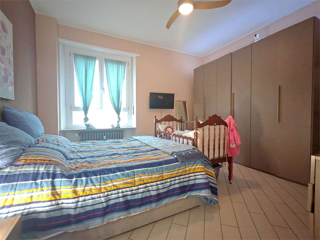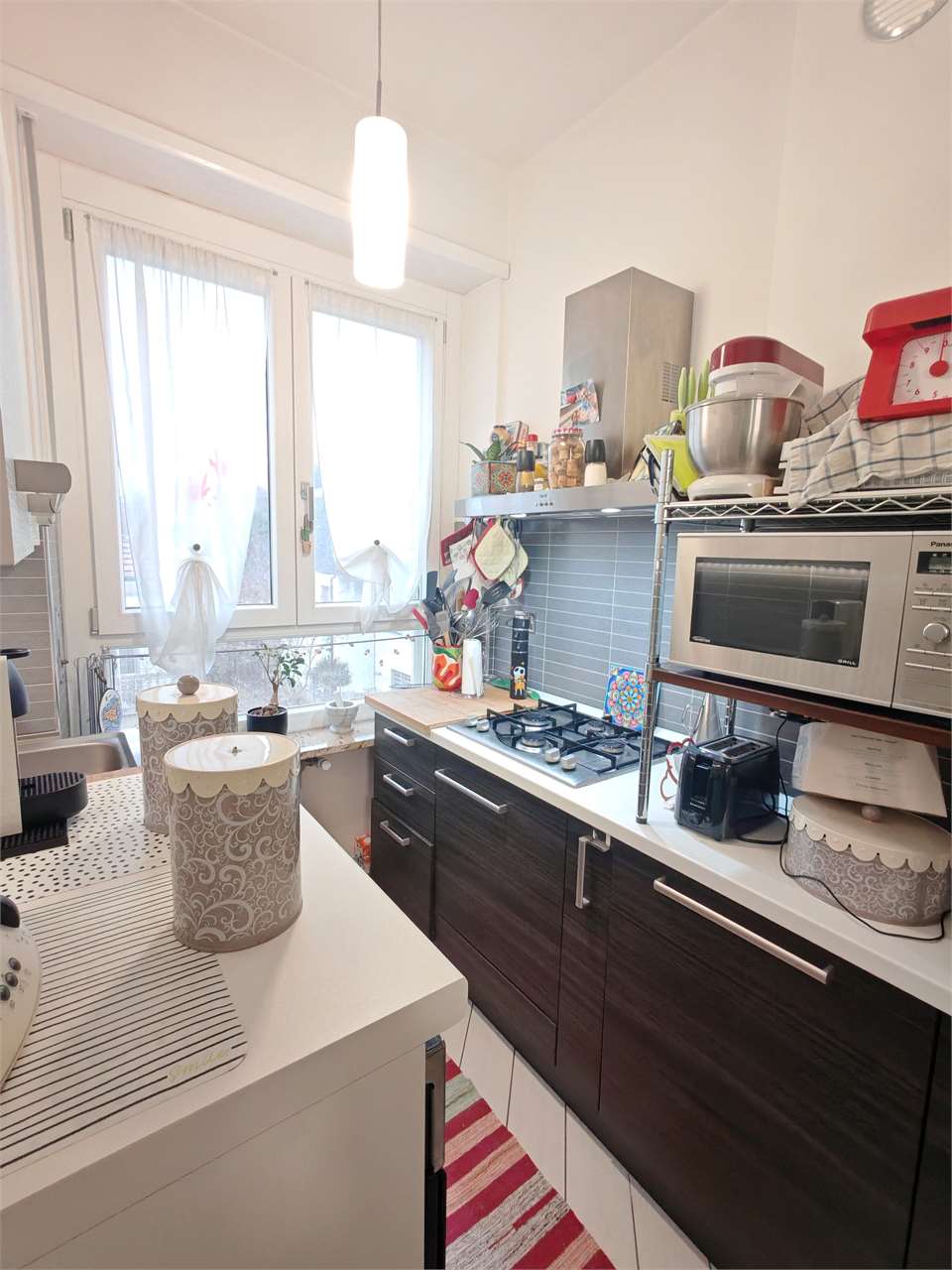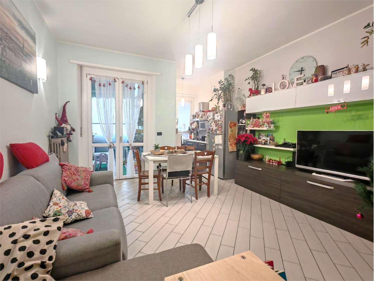 L’immobile, completamente ristrutturato nel 2012, si compone di ingresso su soggiorno con cucina a vista, dal quale si accede a un primo balcone dotato di tende estive e invernali. La zona notte comprende due camere da letto, di cui una matrimoniale, bagno con accesso al secondo balcone verandato, completo di attacchi lavanderia, oltre a un funzionale ripostiglio. Completa la proprietà una cantina al piano interrato.